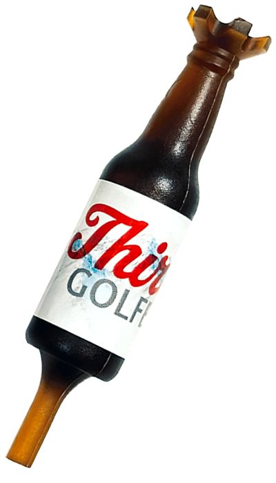 Innovative Design: Each tee is intricately shaped to mirror the silhouette of classic beer bottles, making it a standout piece on the green.